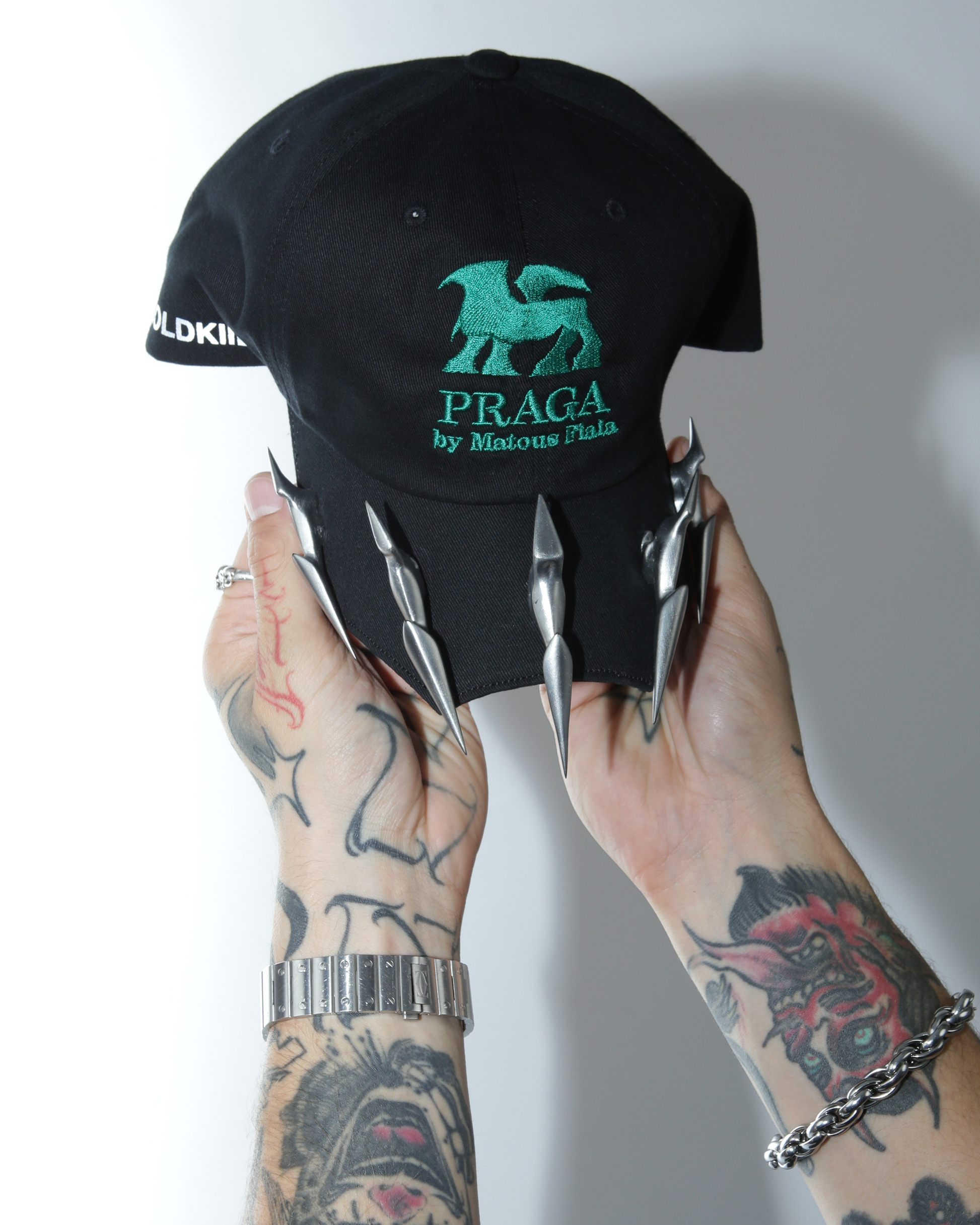 Unikátní one-of-one tour cap vytvořená ve spolupráci s Nik Tendem a Deckym. PRAGA estetika navazující na vizuální svět alba GOLDKIID. Pouze jeden unikátní kus.