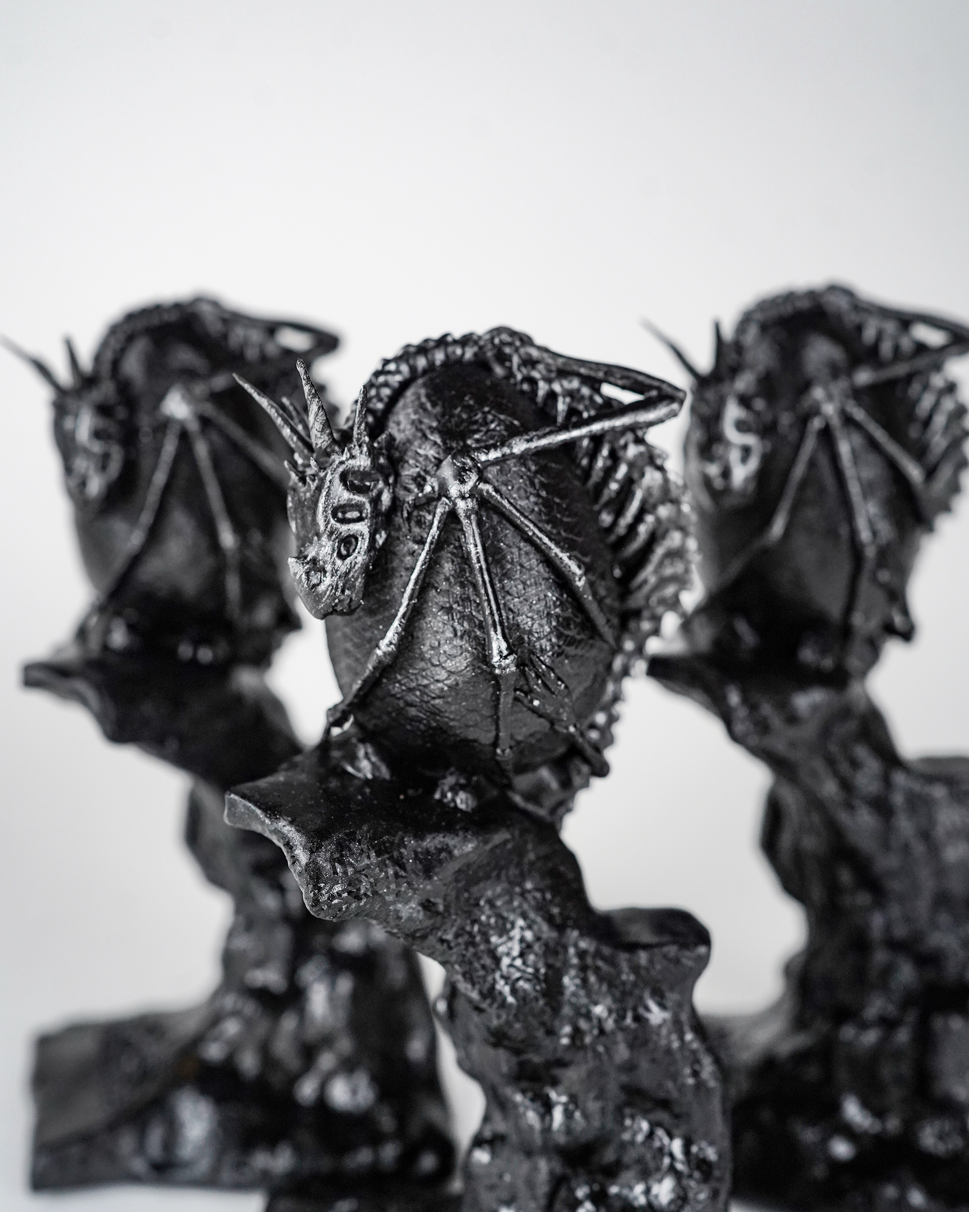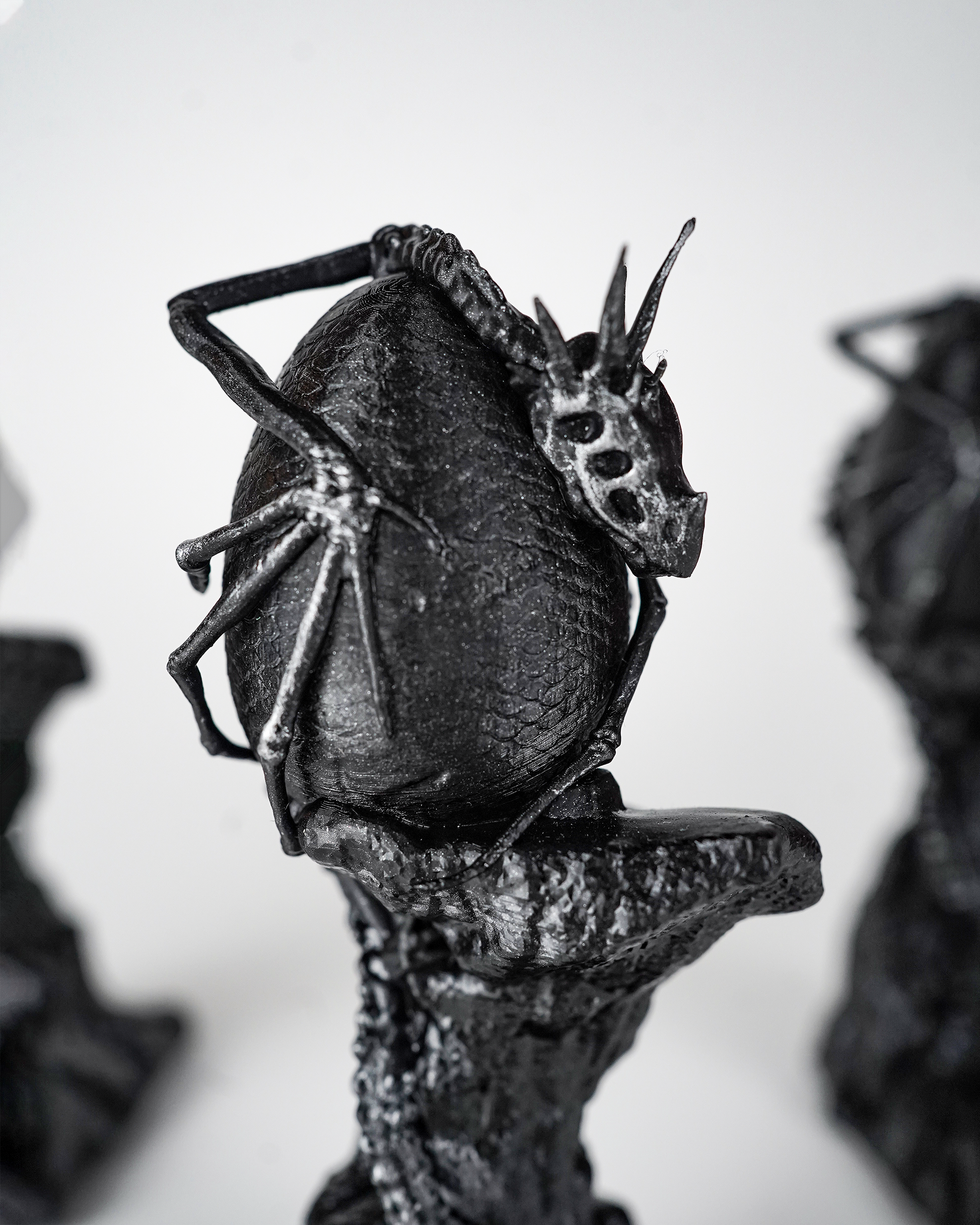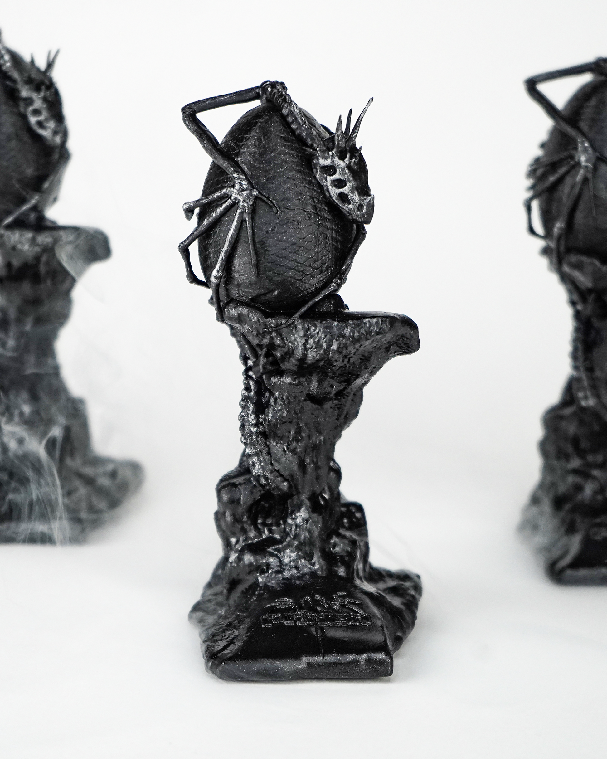 • Design: skeletal dragon wrapped around a dragon egg, mounted on rocky base