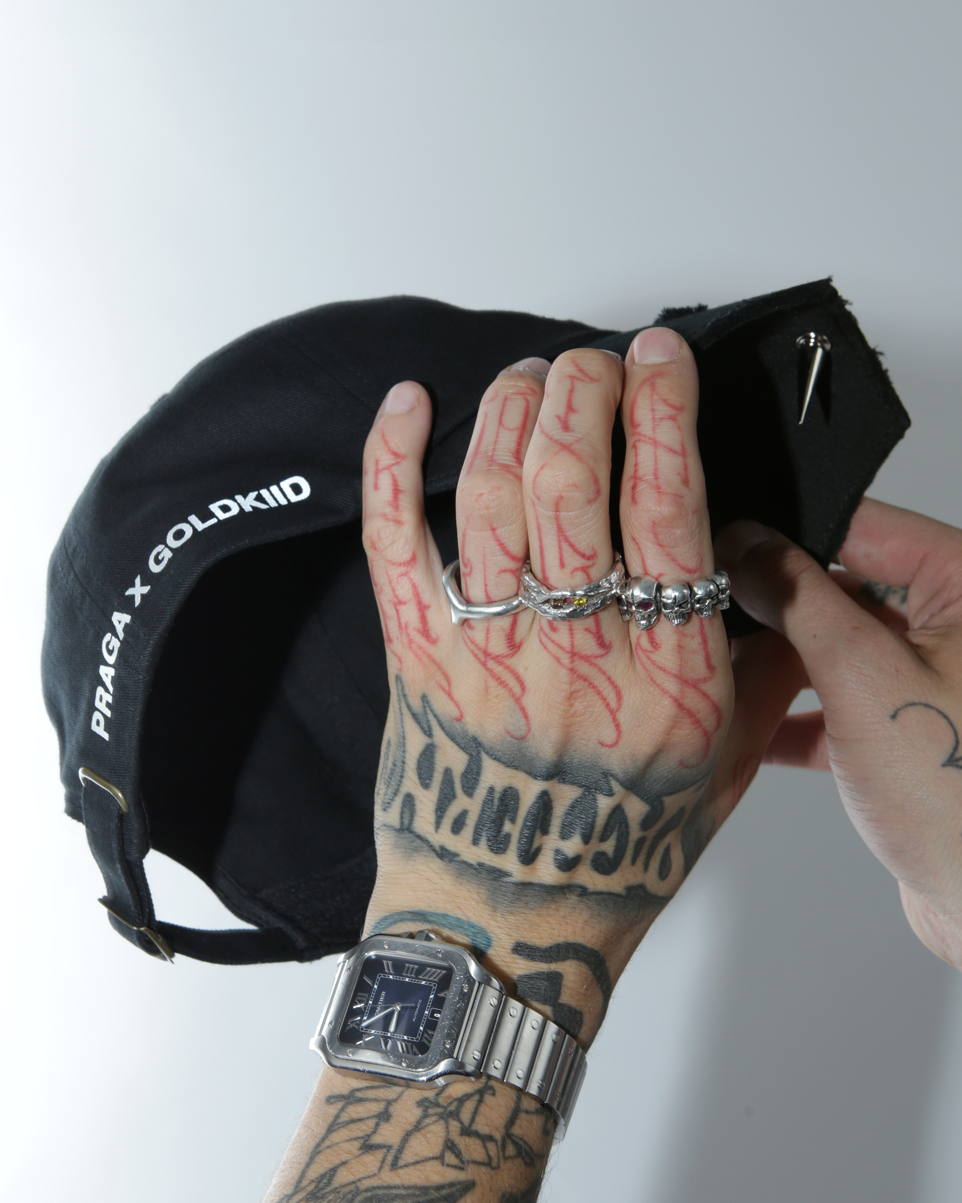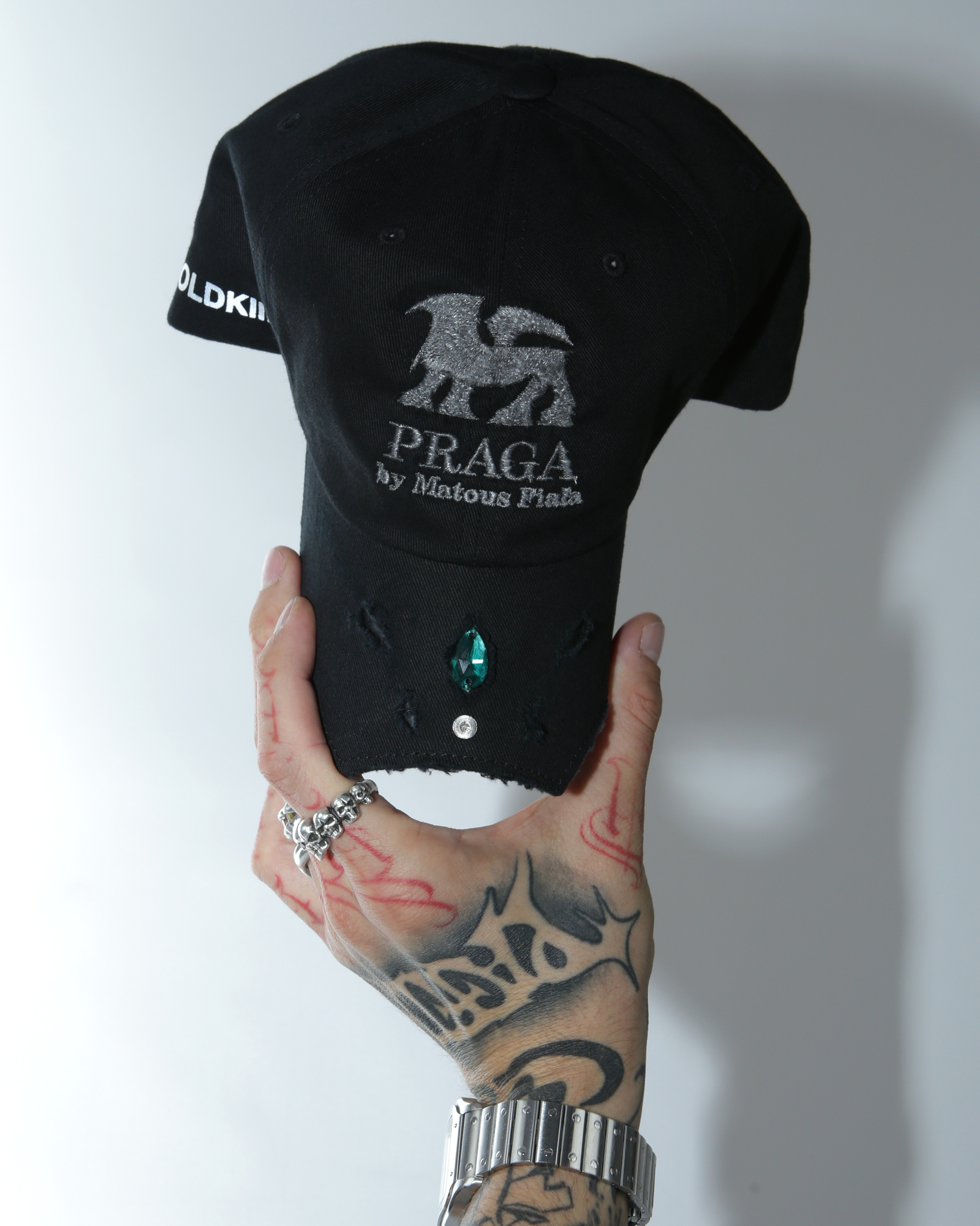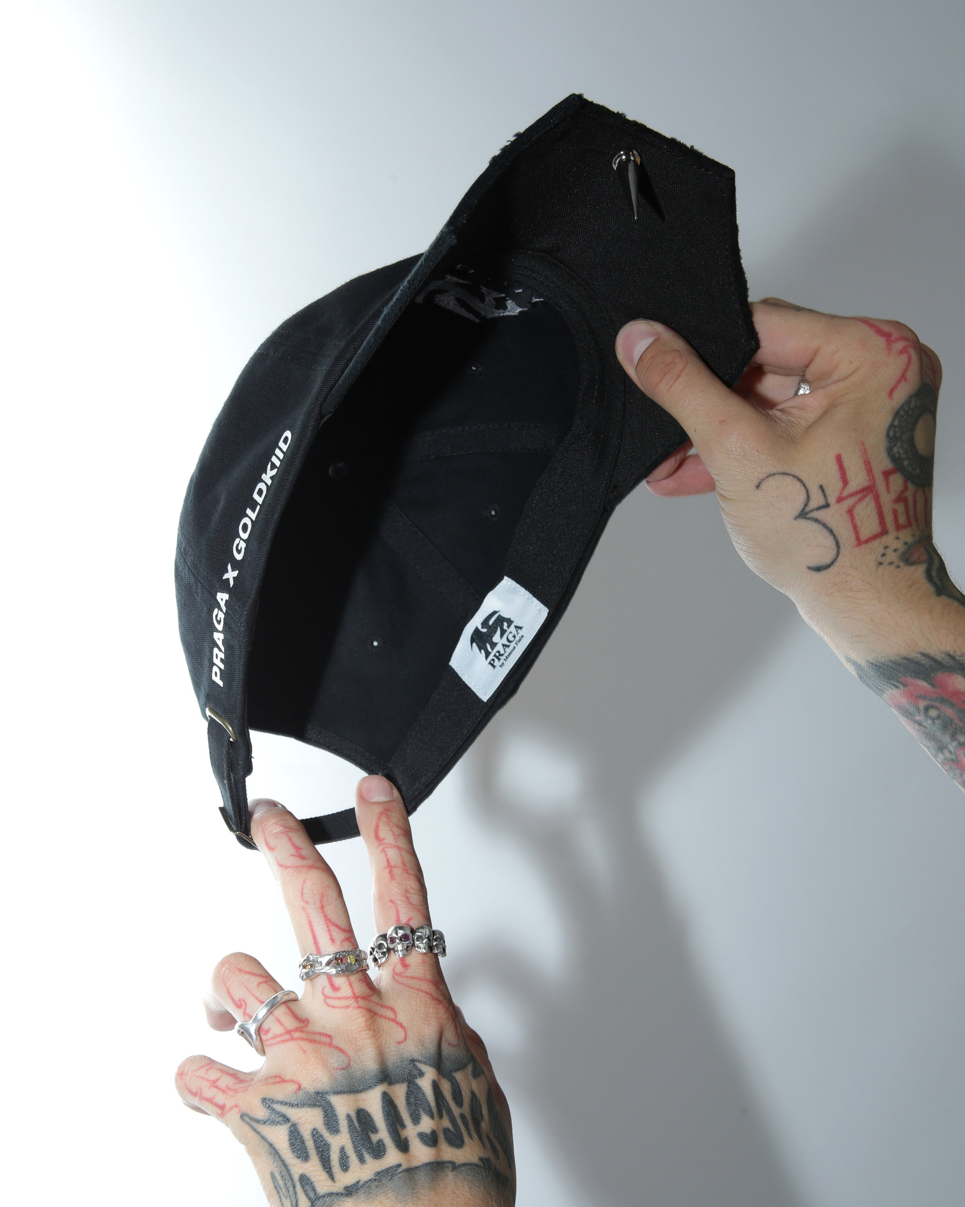 Unikátní čepice vytvořená ve spolupráci s Nik Tendem a Deckym. PRAGA estetika navazující na vizuální svět alba GOLDKIID. Limitovaná edice 30 kusů.